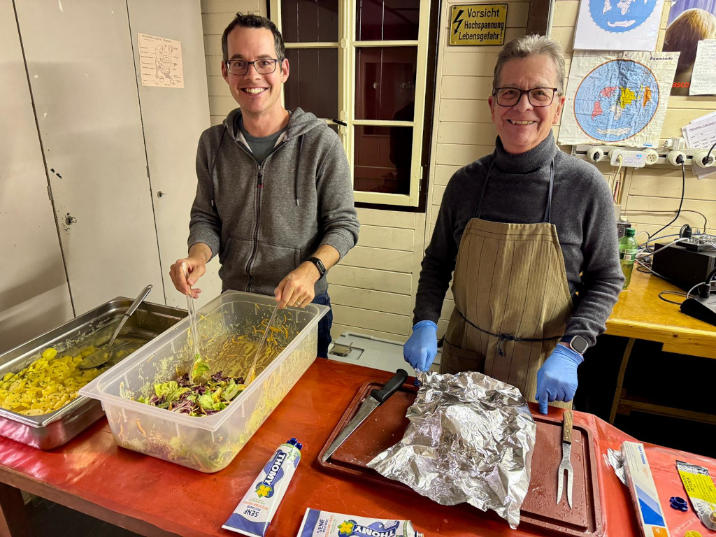 Anschliessend gab es das traditionelle Essen Hamme mit Kartoffelsalat und grünem Salat, vielen Dank ans Küchenteam Bruno HB9BAP, Armin HB9SNW, David HB9ERZ, Matthias HB9HWP und Kurt HB9FMJ.
