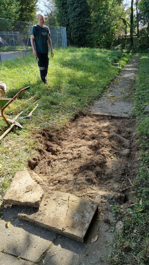Am Donnerstag, den 12.10.2023 haben Bruno HB9BAP und Matthias HB9HWP die schlimmsten Unebenheiten im Plattenweg beim Vereinslokal beseitigt. Sie konnten dort Platten einsetzen, die Edi HB9DCQ im Vorfeld von Manuel HB9JBQ bekommen hatte. Edi hatte Hilfe beim Ein- und Ausladen von Manuel HB9JBQ, Angel HE9HBO und Eduard HE9EDI.