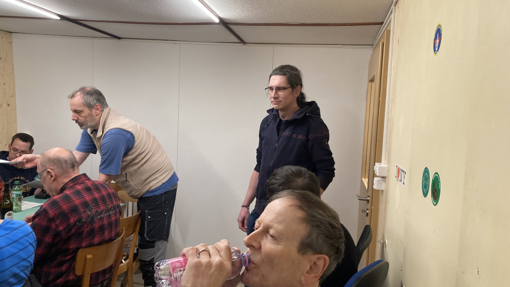 Im Anschluss gab es wieder Hamme mit Kartoffelsalat und Salat, und hier gilt ganz besonderer Dank dem 'Küchenteam' Bruno HB9BAP, Armin HB9SNW, David HB9ERZ und Matthias HB9HWP. Auch Kurt Hohler HB9FMJ hat spontan in der Küche ausgeholfen, obwohl er gar nicht mitgegessen hat.