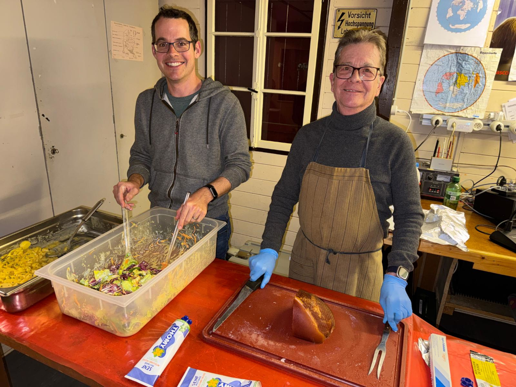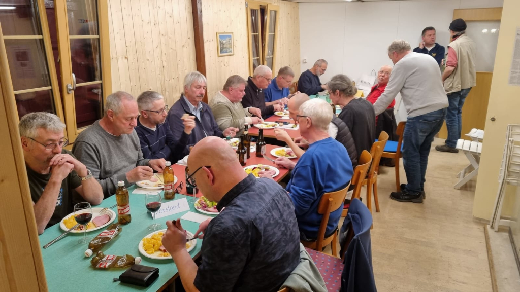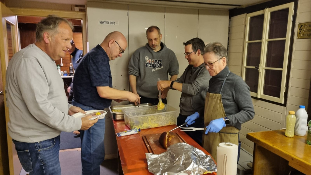 Anschliessend gab es das traditionelle Essen Hamme mit Kartoffelsalat und grünem Salat, vielen Dank ans Küchenteam Bruno HB9BAP, Armin HB9SNW, David HB9ERZ, Matthias HB9HWP und Kurt HB9FMJ.