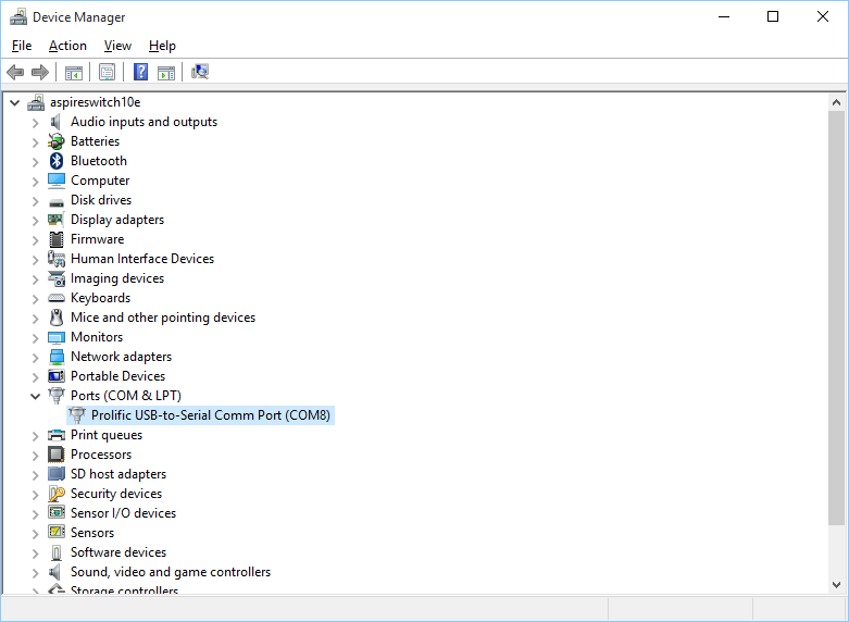 Wichtig: Zuallererst muss man den USB-Treiber installieren. Unbedingt erst nach der Installation darf man den PC und das Hotspot-Transceiver miteinander verbinden. Im Gerätemanager muss man dann unter Ports (LPT & COM) einen Eintrag Prolific USB-to-Serial Comm Port (COM8) finden können. Hier ist das COM8 wichtig (wobei statt der 8 auch eine andere Zahl stehen kann), weil man das später in der Wires-X-Software eingeben muss.